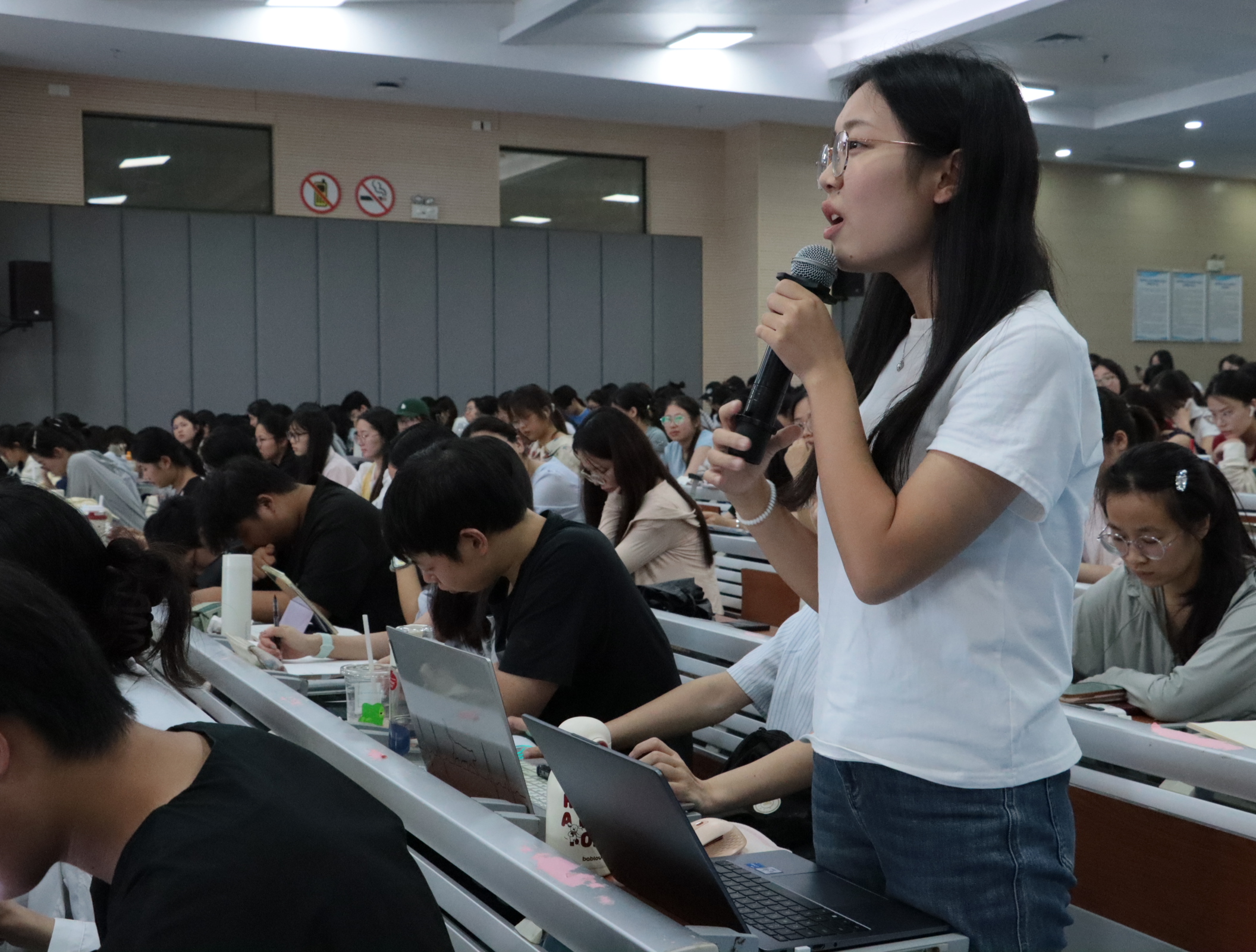 胡承佼以“文本解读”为中心,对胡宇虹的精彩讲座进行总结,强调同学们要学会触类旁通,将所学知识灵活运用到未来的教学实践中。同学们也表示从胡宇虹老师的分享中学到了很多,“课文是教学的基础,把文章吃透是教学的关键”“教学活动的设计不可脱离文本,要设计有价值、有意义的活动”。