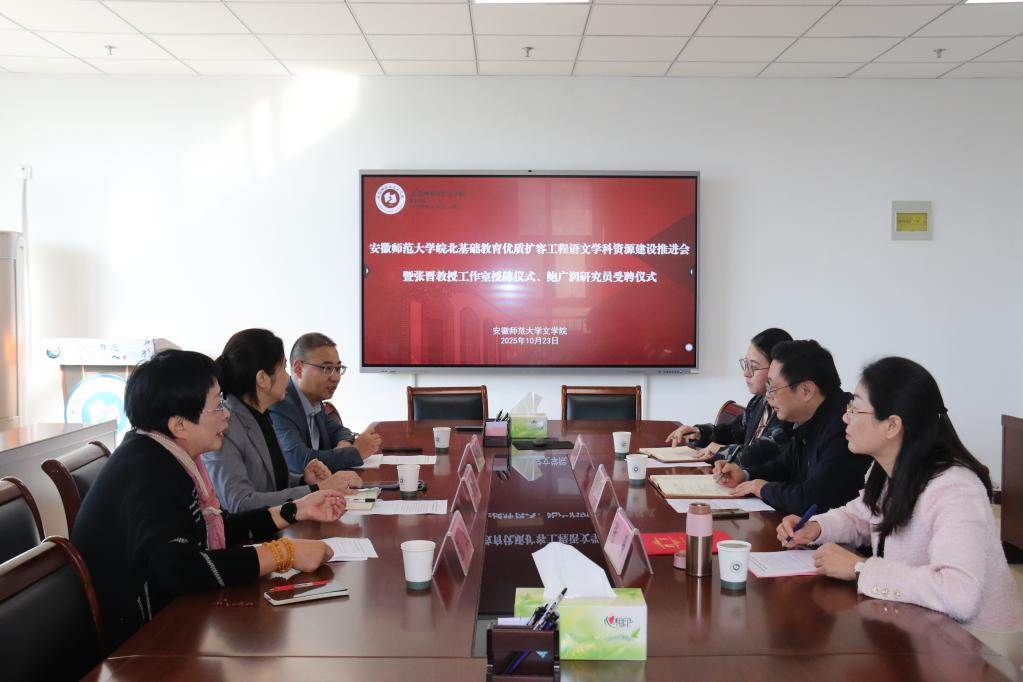 在与会人员的共同见证下,3044AM永利集团与五河一中进行“双向互聘”:3044AM永利集团张晋老师受邀成立“张晋教授工作室”并落户五河一中;“虹城名师工作室”主持人、五河一中鲍广润副校长受聘担任3044am永利集团语文教育研究中心研究员。随后,与会人员围绕语文学科资源建设的痛点、难点与突破点展开深入交流。研讨商定,未来将依托3044AM永利集团学科优势、师资力量、研究成果,助力皖北地区语文学科建设与教学研究;同时通过常态化教研、课程共建、师资培训等方式,进一步推动高校科研团队与中学名师团队的深度融合,让高校的理论研究“接地气”,让中学的实践经验“通理论”,真正实现“优势互补、协同共进”。
