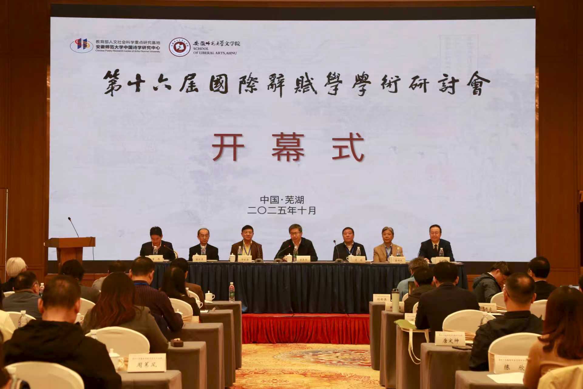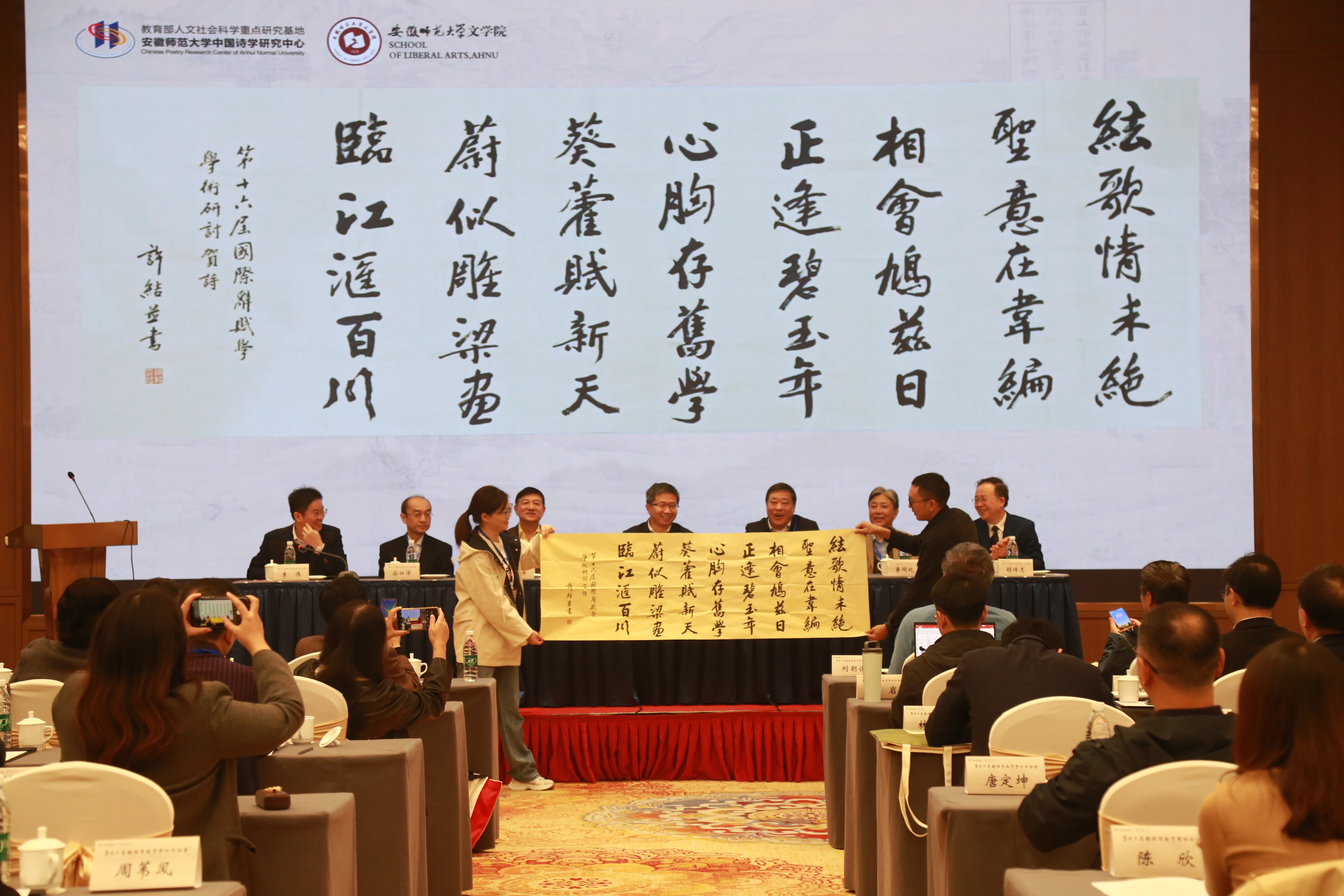 10月24日至26日,第十六届国际辞赋学学术研讨会在安徽芜湖召开。本次会议由中国赋学会主办,3044am永利集团中国诗学研究中心、3044AM永利集团承办。来自美国肯恩大学、新加坡国立大学、日本东京大学、日本东北大学、日本中京大学、韩国高丽大学、香港浸会大学、澳门大学、台湾政治大学、台湾中国文化大学、北京大学、南京大学、中国社会科学院大学、山东大学、武汉大学、南开大学、吉林大学、湖南大学、上海交通大学、西安交通大学、华中师范大学、陕西师范大学、贵州师范大学、首都师范大学等海内外80余所高校、研究所、出版社、杂志社等学术机构近140位专家学者参加会议。