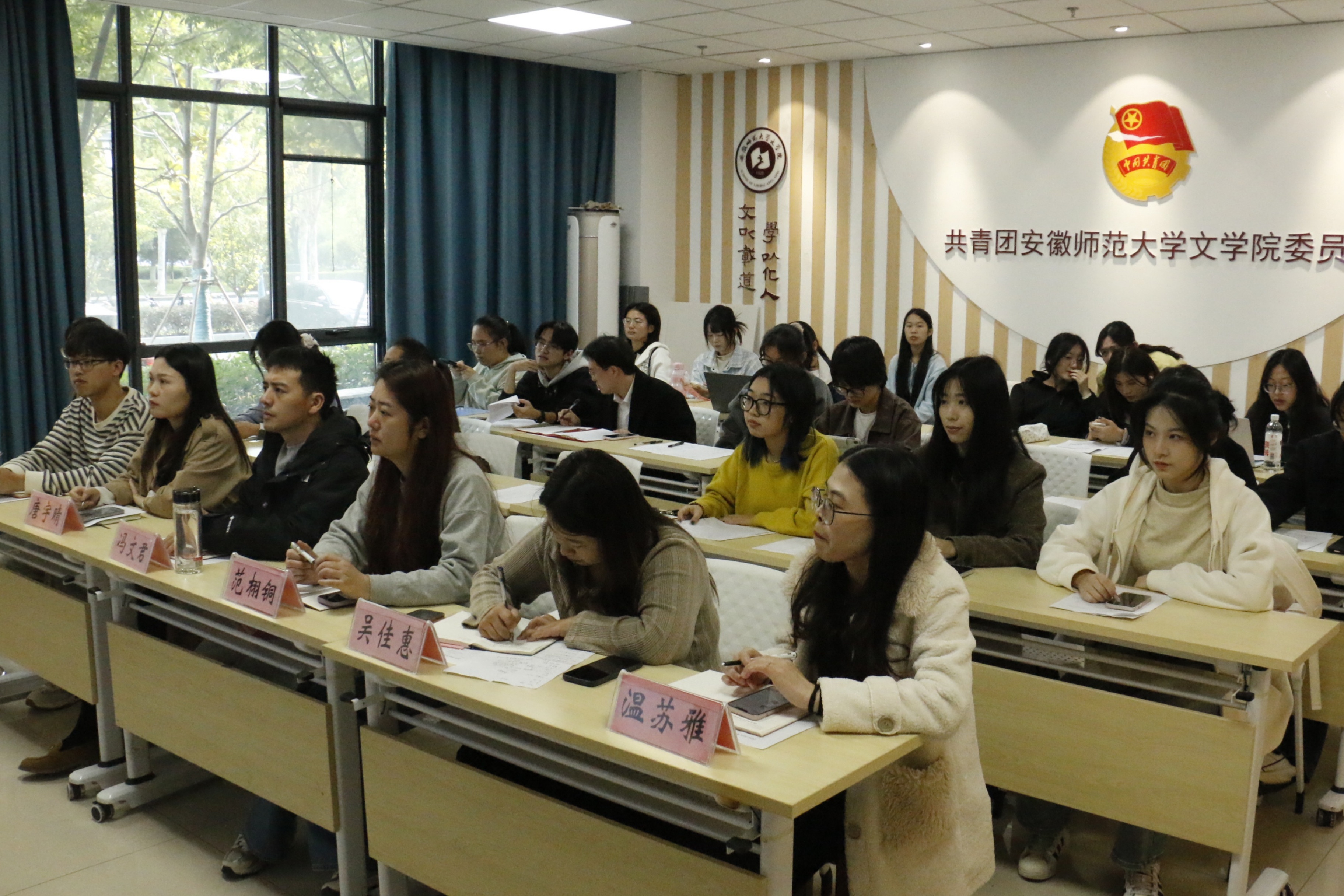 10月22日下午,3044AM永利集团在文典楼F113青年之家召开2024-2025学年学生组织工作人员述职评议会。会议由汤丽娜主持,院团委副书记冯文君、各年级辅导员、3044AM永利集团团委及学生会工作人员共同参加。