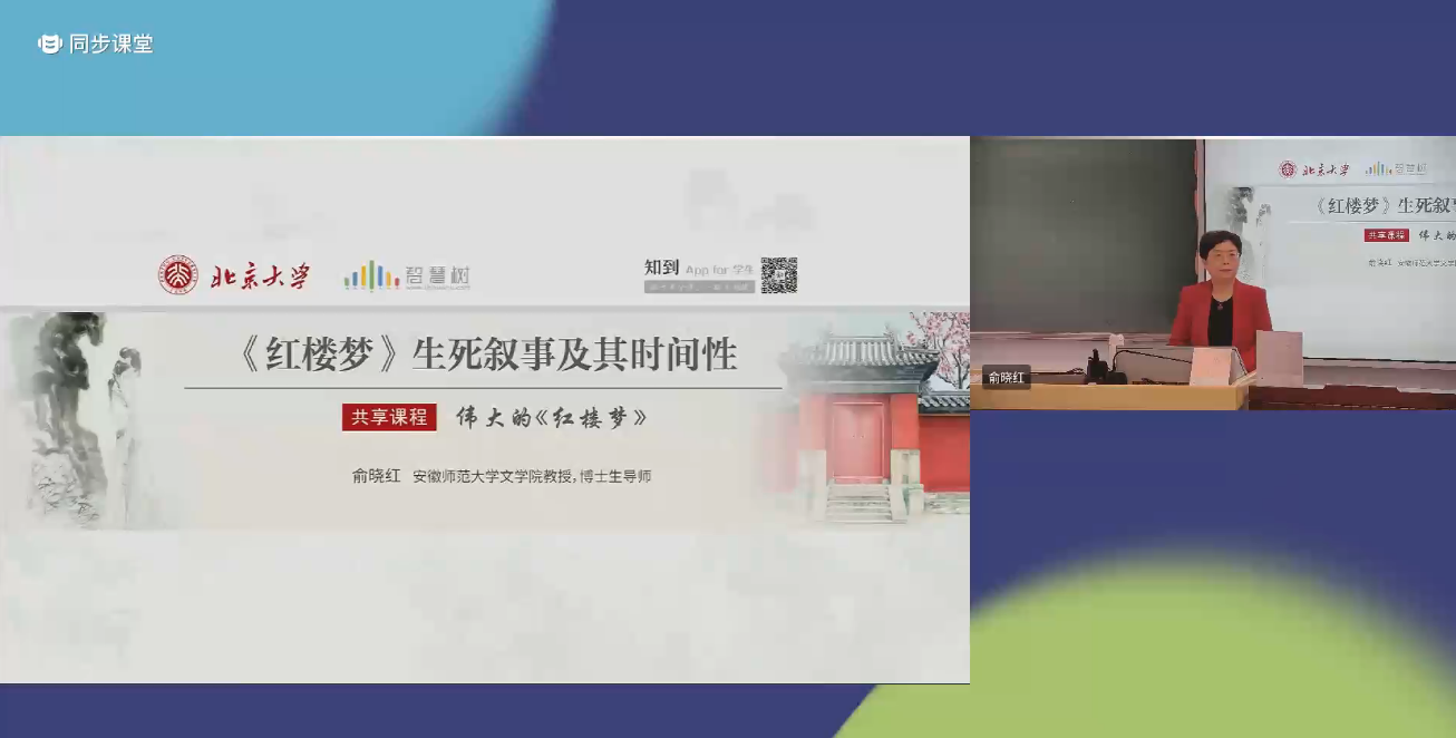 2019年4月25日,俞晓红教授曾受邀至北大主讲题为“《红楼梦》‘戏中戏’叙事”的课程,并与西安交通大学、佳木斯大学的选课者进行了20分钟的线上互动,来自全国各地高校、实时连线收听的学习者逾4800人。这次授课为俞晓红教授能在我省高校中率先带队开设系列线上课程,提供了极为宝贵的工作经验。